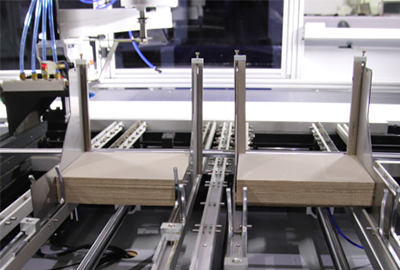 Board / carton delivery using Yamaha manipulator, dual camera HD image positioning, accuracy of (± 0.1) mm.