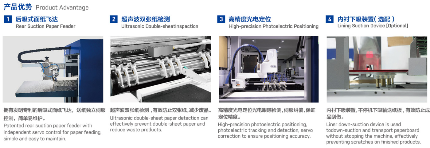 It can automatically feed and glue paper, delivery and position cardboard, and fold four sides in one process; there are features of accurate and quick positioning, and beautiful finished products etc. It is used to make hardcovers, notebook covers, desk calendars, hanging calendars, book-type boxes, fles and irregular covers etc.